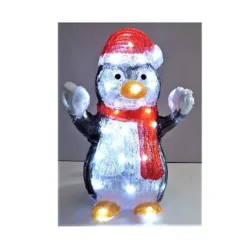 Battery Operated Acrylic Christmas Penguin Light Bright White LED Light Snowball Fight Blue Scarf
