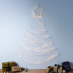Pre-Lit String Light Christmas Tree Wall Silhouette, 117 Warm White LED Lights, 93 Cm