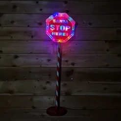 1m Outdoor Christmas Lit Multi Function Santa Stop Here Stake Sign With Base In Multicoloured