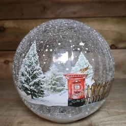 20cm Festive Christmas LED Crackle Effect Glass Winter Scene Ball