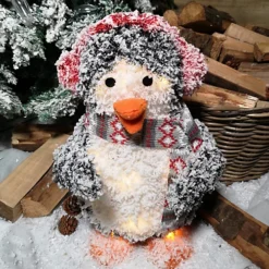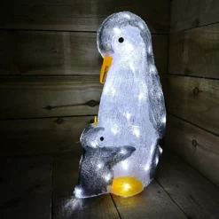 45cm Cool White LED Acrylic Christmas Penguin With Flashing Multi Colour String Light