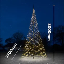 It is designed with a cross base and mast allowing it to stand on a hard surface without the need for pegs or anchoring it to the ground, this makes it perfect for balconies or roof terraces; in fact any area that does not have soft ground. The tree can withstand almost all types of inclement weather. The light strands are connected to a special weather-resistant 31 Volt transformer that can be easily connected to the mains supply, why not connect the lights to a timer…