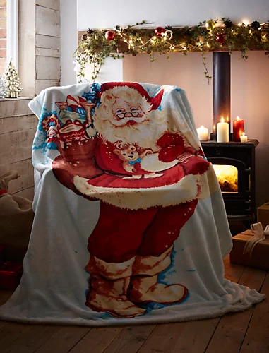 Father Christmas Festive Fleece Sherpa Throw