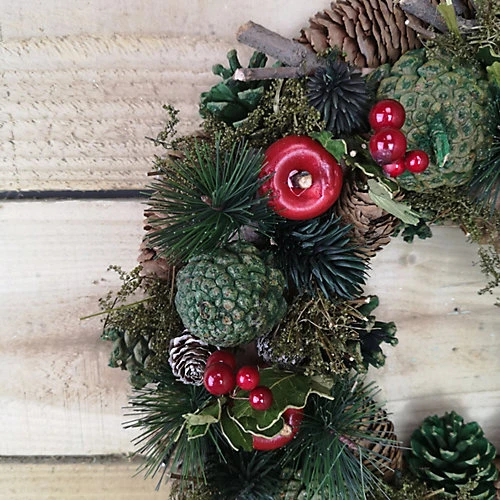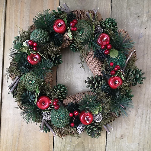 Make you front door stand out this Christmas with this red berry and apple wreath