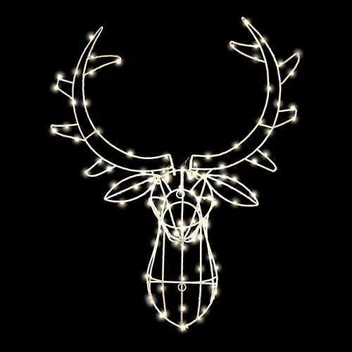 Coming in at 70cm in height, this festive reindeer head decoration features twinkling warm white LEDs. Wrapped around the metal frame on a silver cable, the 120 warm white LEDs outline the silhouette of the stunning decoration.