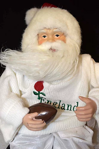 English Sitting / Kneeling Rugby Boot & Suit Wearing Santa