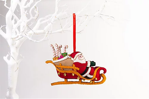 Be the first to review “Handmade Felt Santa In His Sleigh Christmas Tree Hanging Decoration – 11.5 Cm” Cancel reply