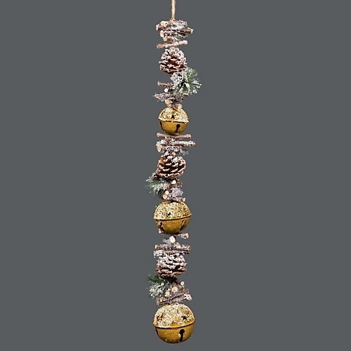 Christmas Jingle bells garland Home Wall Door Hanging Decoration. It has brown wooden sticks on top and wrapped with bells, Pinecones, and berries. You could also add these to a Christmas wreath or Christmas garland. The kids will go crazy every time the door opens thinking it’s Santa’s sleigh close by. Colour: Gold Bells, Size: 90cm, Order Quantity: 1pc