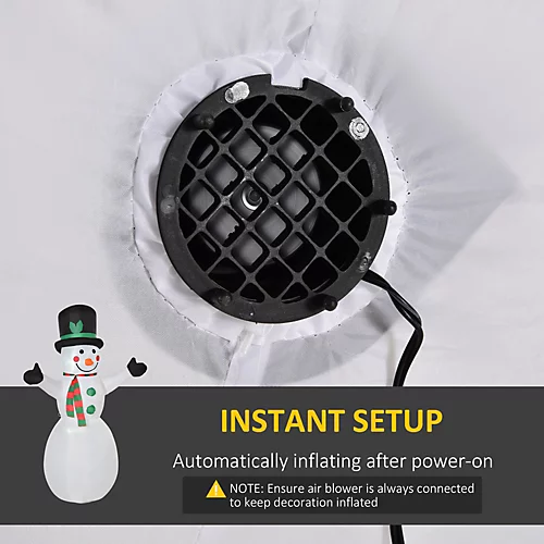 - ● Item Name: Inflatable snowman • Brand Name: HOMCOM • Material Used: Polyester • Colour: White • Dimension: 130L x 72W x 193H cm • Box Dimension: 20L x 20W x 25H cm • Snowman Height: 1.93m • Cord Length: 3m • Input Voltage: 120 • Output Voltage: 12V/1000MA • Certification: IP44, CE/GS • Gross Weight: 2 kg • Net Weight: 1.8 kg • Flat Pack: YES • Assembly Required: YES • Custom Label: 844-168