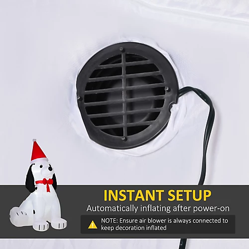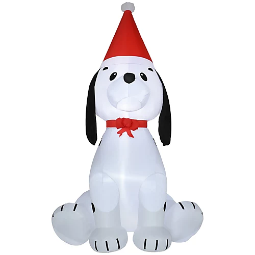 - FESTIVE HOLIDAY FUN: This 6ft tall outdoor inflatable features a cute white dog sitting on the ground wearing a Santa Claus hat. It is a great addition to your festival yard for Christmas parties and events.