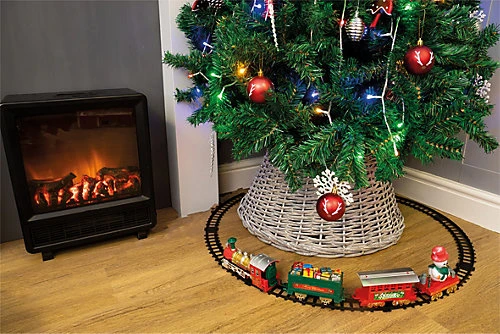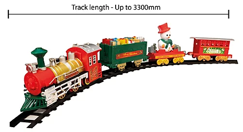 This beautifully presented train set is the ideal gift to delight your little ones at Christmas time. The set features a train with working headlight, 2 Christmas carriages, a truck carrying a snowman, 8 pieces of curved track and 2 pieces of straight track. The track is extremely easy to put together and take apart using the built in clips, the carriages go together with the attached hooks. Thanks to the combination of straight and curved track pieces your children can get creative and configure the track as they wish. The train is powered by 2x AA batteries (not supplied) that are placed inside the train and cannot be seen when in use. When the batteries are inserted turn the train on using the on/off switch and it will move around the track pulling the carriages behind with its headlight shining and playing jingle bells. The train will travel either forwards or backwards depending on which way you move the on/off switch.