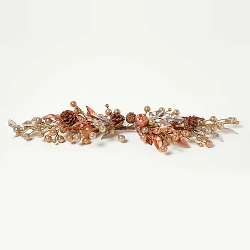 - Gold and champagne Christmas swag with pinecone, berries and apple decoration. Measures approximately 70 cm long. Colour: Champagne.