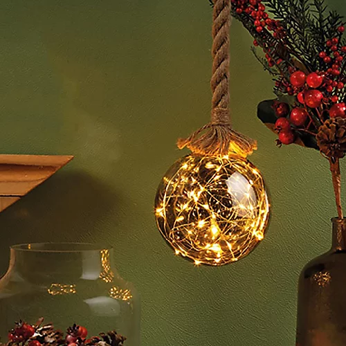 30 LED LIGHTS: The light up Christmas decoration features 30 LED (14cm) covered by the smokey glass. Giving off a brilliant aesthetic through the dark glass of the warm white LED lights.