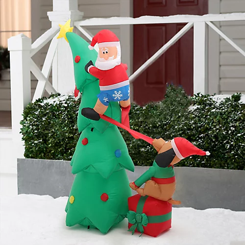 A cartoony design that everyone will love, LED lights have been installed inside the structure to create a warm and inviting glow when it stands at night. Automatically inflates when plugged in, and deflates quickly too.