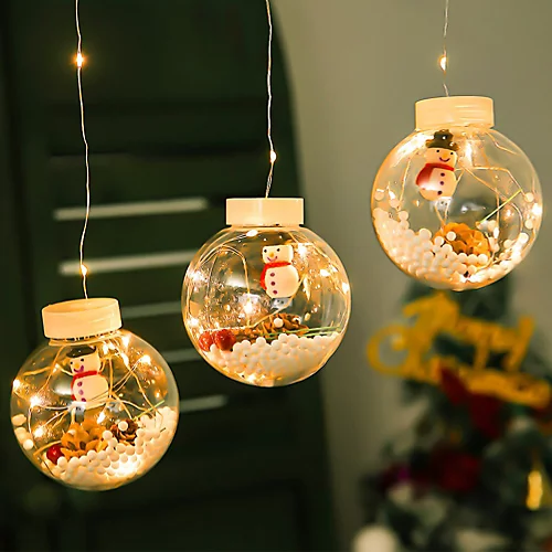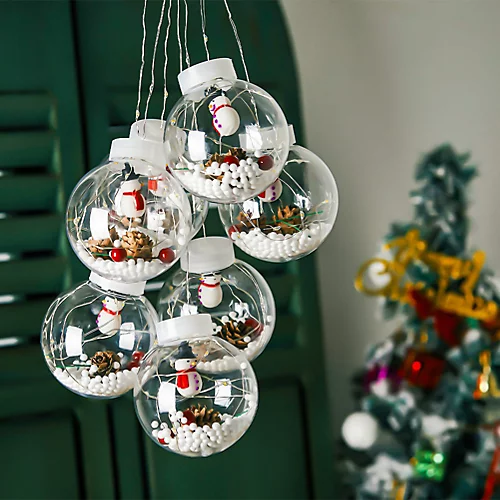 Transparent Christmas ball decoration come with energy-saving LED lights.It can easy to hang with sucker cup.