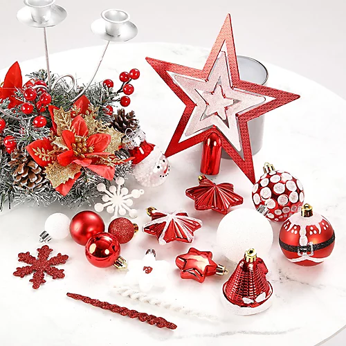 This delicate box of Christmas balls from Livingandhome includes an assortment of balls, Santa, bells, snowflakes and stars for you to choose from to personalize your own Christmas tree. Each ornament is covered in a shiny finish to help create a striking Christmas tree and build up a joyful festive atmosphere in your indoor and outdoor areas. Better yet, each ball is designed with a cap for convenient hanging.