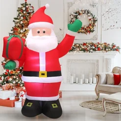 Add to your Christmas decorations with an inflatable Santa Claus who waves hello and holds a gift box. The gracious expression on his face will delight your neighbors while instilling harmony inside and outside your home. Setting up this inflatable is easy and only takes a few minutes. Made of strong polyester, it will be a delightful addition for years to come.