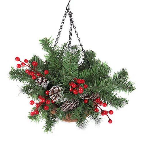 You will not regret choosing the Livingandhome Christmas hanging basket to decorate your home this year. For starters, the lush needles are pretty realistic-looking and the pine cones are sprinkled with snow for a rustic look. Better still, it is also trimmed with clusters of berries for a natural woodland look. Plus, it’s pre-strung with warm lights for a romantic touch. This hanging basket is suited for indoor and covered outdoor areas.