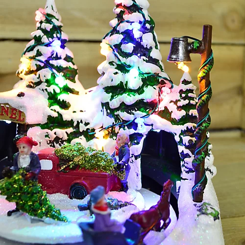 - The display is of a festive scene of a woodland tunnel with Christmas trees and a horse and trap, which will move through the tunnel