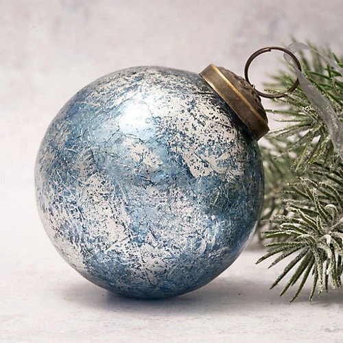 Two tone in colour, and finished with a hand applied foil effect, with a crackle glass glaze.The Crackle Glaze adds extra weight to this decoration, which is very Heavy, and will require placement on sturdy branches, closer to the trunk.