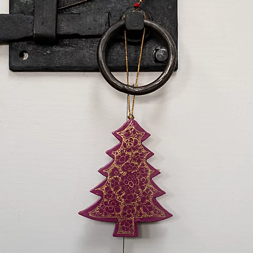 Pack of 3 beautiful handpainted Paper-Mache flat trees from Bollywood Christmas. Designed here in the UK, and handcrafted by our skilled artisans in Kashmir. Each Paper mache bauble is robust and child & pet friendly. Each tree measure 10 x 8cm and painted on both sided. These are great for hanging around the house, table decorations or gifts that fit inside cards.