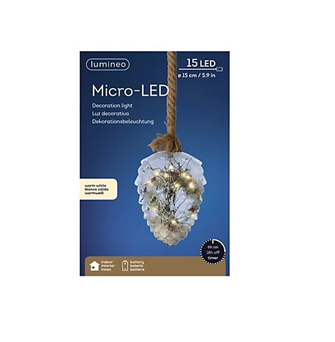 Pine cone design filled with festive foliage and 15 Micro LEDs