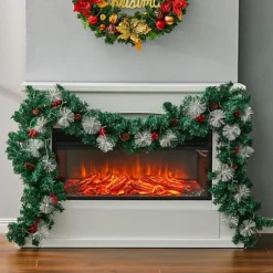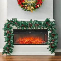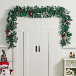 Livingandhome 270 Cm Light Up Artificial Christmas Garland With Pine Cones Berries Decor