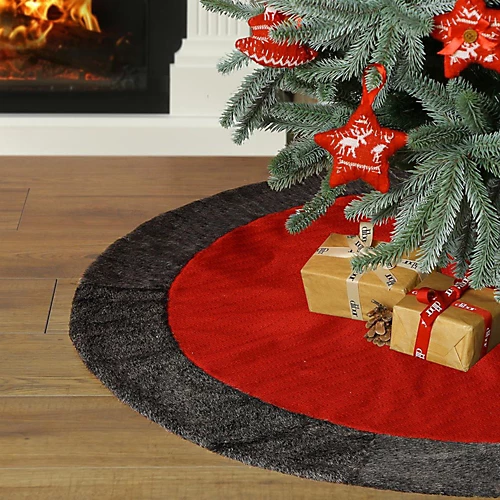 Introduce a touch of classic Scandi style into your home this year with our red heart knitted Christmas Tree Skirt Cover. Taking its inspiration from Nordic style, this festive tree skirt is finished with a charcoal coloured faux fur cuff. Easily displayed, our Nordic tree skirt is sure to become a favourite for years to come, and has ample room for hiding tree legs.