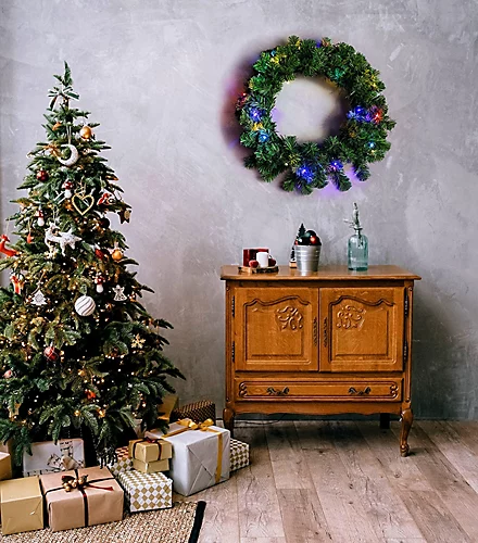 This wreath has a plain design along with 30 Multicolour LEDs suitable for Indoor Use.