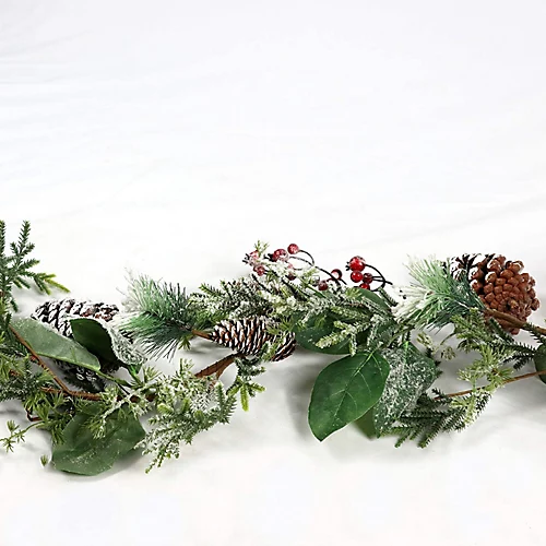 - Decorated with Artificial Snow Leaves, Flowers, Pinecones and Berries. Made from high quality PVC material.