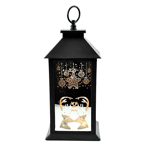 - Elegant crafted plastic Black Lantern fitted with Christmas theme designed on glass with warm white LED string light inside.