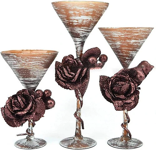 Stylish decorated candle vase ideal for the wedding, Halloween, Christmas party table centrepieces decorations. Set of 3 different size as seen in images. Comes with glittered decorated flower design gives stunning looks. Material: Glass Vase Size: Large: 30cm Medium: 25cm Small: 20cm Candle Holder Size: Inside Height: 7cm x Wide: 12cm.