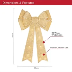 The Christmas Workshop 71639 50cm Gold Coloured Light-Up Fabric Bow