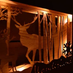 37cm Wooden Christmas Wonderland Reindeer Scene Lit With 40 Warm White LED’s