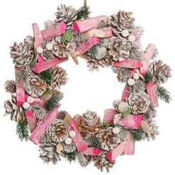 Pastel Pink Driftwood Summer Autumn Winter Door Decoration Christmas Wreath 36cm
