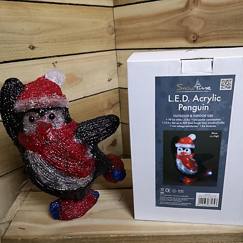 30cmSnowtime Acrylic Christmas Penguin with red hat and scalf.