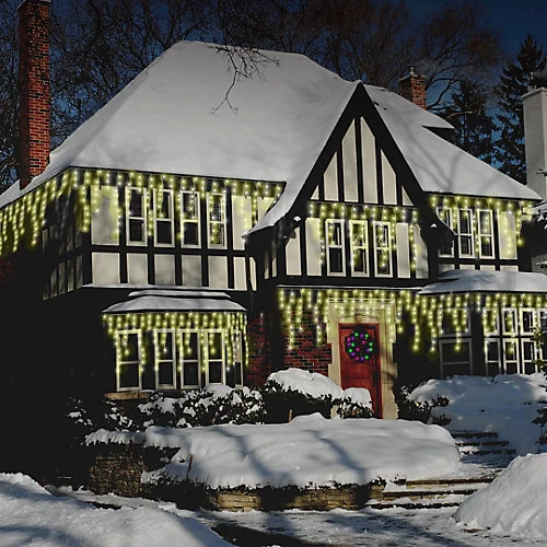 The Christmas Workshop is the market leading supplier of everything you need to make your Christmas as magical as ever! From indoor and outdoor lights and decorations, to Christmas ornaments such as nutcrackers, festive train sets and candle bridges, the Christmas Workshop has everything you need to decorate your home today. These outdoor Christmas lights are the perfect festive decorations to have your home looking and feeling extra festive this Christmastime! Measuring 11.5 metres in length, this set of Christmas lights features 480 warm white LED lights that form the shape of icicles and set a tone of those cold winter nights which are extremely festive. The Christmas lights are mains powered, and if you wish to hang your festive lights outdoors then please note the transformer and power box need to remain indoors at all times. There are 8 different settings to choose from with these Christmas lights, all of which deliver a different sensory experience. Choose between combination, sequential, chaser flashing, twinkle flashing, waves, slow glow, slow fade and steady on, and create the perfect festive ambience either on the outside of your house, or inside in the living room, kitchen or conservatory of your family home. As well as being fantastic outdoor Christmas lights these fairy lights are also suitable to provide decorative illumination for weddings, birthday parties, christenings or any other gathering you want to add some extra sparkle to. The warm white fairy lights are much more subtle than standard Christmas lights, and can be a way to show off your festive spirit whilst also keeping the mood classy and sophisticated.