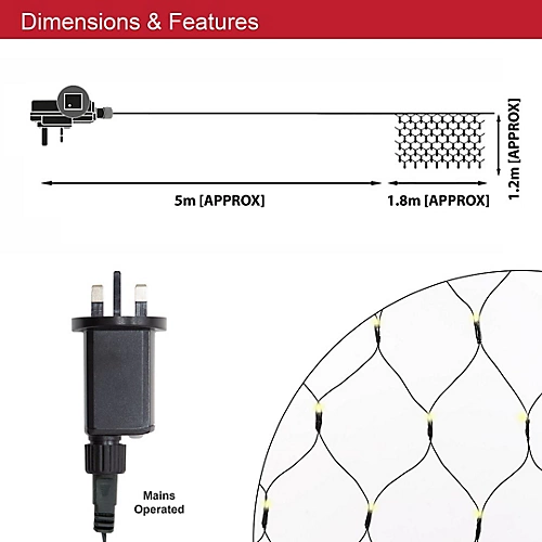 These 180 warm white LED fairy lights are the perfect decoration to illuminate both the inside and outside of your home this festive season. Measuring 1.8M in width by 1.2M in depth (6ft x 4ft), these string lights will provide optimum illumination for your home this Christmas. The lights are mains powered, and there is a 5-metre wire length from the plug to the first bulb, allowing for a discreet starting point. The Christmas fairy lights are curtain designed, making them fit seamlessly into any average sized window frame. However, the lights are also multi-functional and can be hung on your Christmas tree, or anywhere else you want to brighten up this Christmas. The lights have 8 different illumination settings allowing you to create an ambience that is suited to your style. Once the festive season is over these lights can be used to decorate outdoor spaces such as gazebos and patios, as well as being used as mood lighting for weddings, birthday parties, and christenings, as well as being used as decorative lights for bedrooms and university/college dorm rooms too.