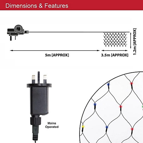 These 360 multi-coloured LED fairy lights are the perfect decoration to illuminate both the inside and outside of your home this festive season. Measuring 3.5m in width by 1.2m in depth (11.5ft x 4ft), these string lights will provide optimum illumination for your home this Christmas. The lights are mains powered, and there is a 5-metre wire length from the plug to the first bulb, allowing for a discreet starting point. The Christmas fairy lights are curtain designed, making them fit seamlessly into any average sized window frame. However, the lights are also multi-functional and can be hung on your Christmas tree, or anywhere else you want to brighten up this Christmas. The lights have 8 different illumination settings allowing you to create an ambience that is suited to your style. Once the festive season is over these lights can be used to decorate outdoor spaces such as gazebos and patios, as well as being used as mood lighting for weddings, birthday parties, and christenings, as well as being used as decorative lights for bedrooms and university/college dorm rooms too.
