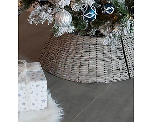 A woven rattan effect tree skirt which is suitable for both artificial and real Christmas trees