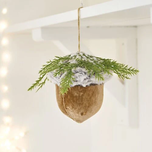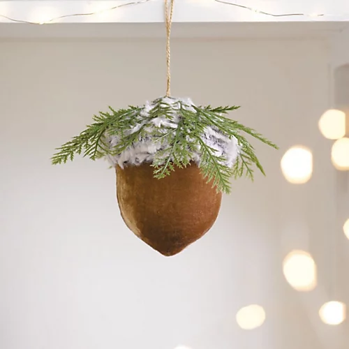 - Acorn Decoration: Faux fur and velvet, with faux evergreen to trim form this acorn from our Tromso collection. Hang from its rustic string loop to bring some Nordic magic home.