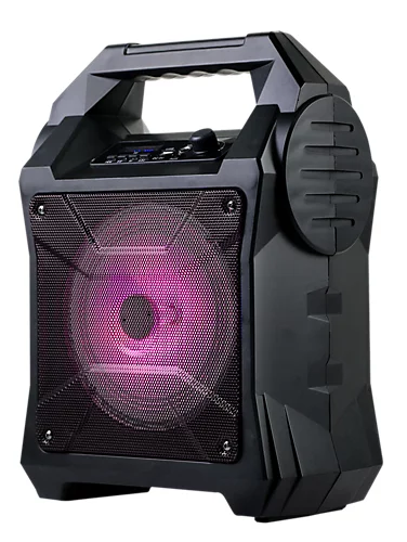 Defined by its vibrant LED lighting, professional karaoke microphone with holder and easy-to-use intuitive controls, the WICKED GIZMOS PORTABLE KARAOKE SPEAKER is everything you need to get the party started in one portable package